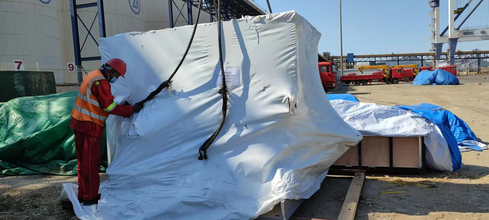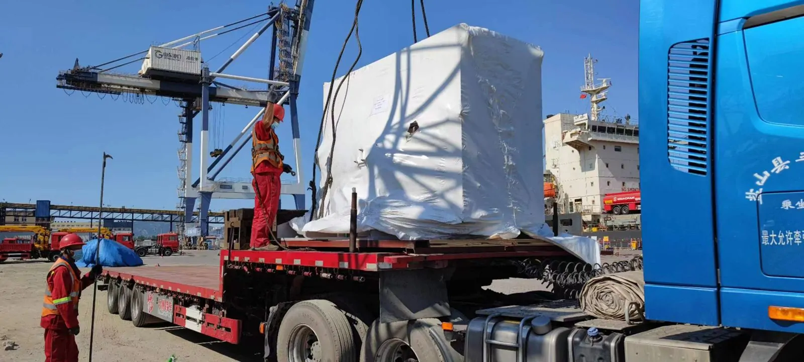 Для доставки тяжеловесного электрического двигателя был использован морской и автомобильный транспорт.