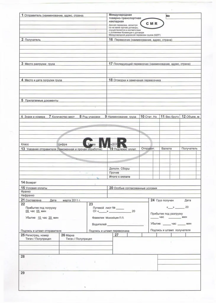 Где взять бланк международной накладной CMR и как его заполнить